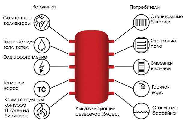 • Незаменимый аккумулятор тепловой энергии в системах отопления.