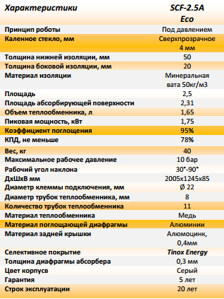Плоский солнечный коллектор SCF-2,5A Eco