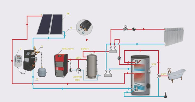 • Добавление энергии электрического нагревателя только в случаях, если нагретой альтернативными источниками энергии воды недостаточно;