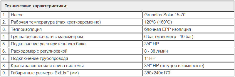 Однолинейная насосная группа для гелиосистем Novasfer NOVASOL MONO 1" 8-38l/min Grundfos Solar 15-70