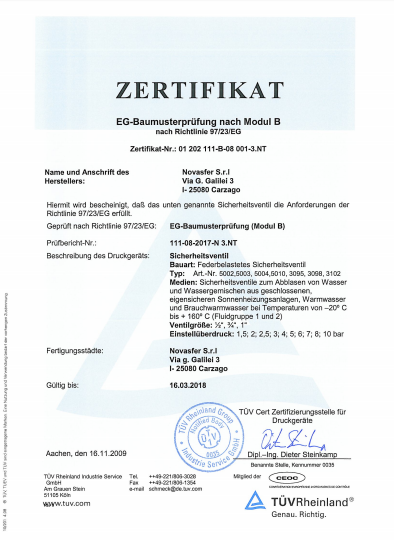 7. Группа безопасности с манометром 6 бар сертифицирована TUV в соответствии с SV100. 7.7 – директива 97/23/СЕ, шкала манометра 0-10 бар, выход для расширительного бака 3/4" НР (ISO228)