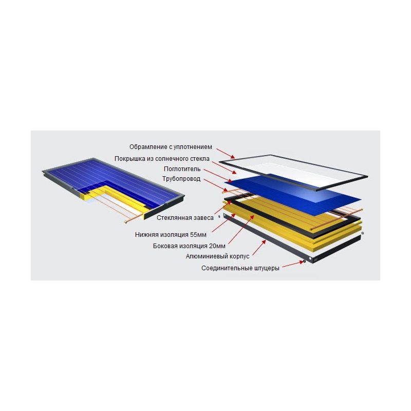 это обеспечивает высокий уровень изоляции и обеспечивает высокую эффективность даже в холодное время года. Покрытый порошковым лаком корпус обеспечивает привлекательный дизайн солнечного коллектора.