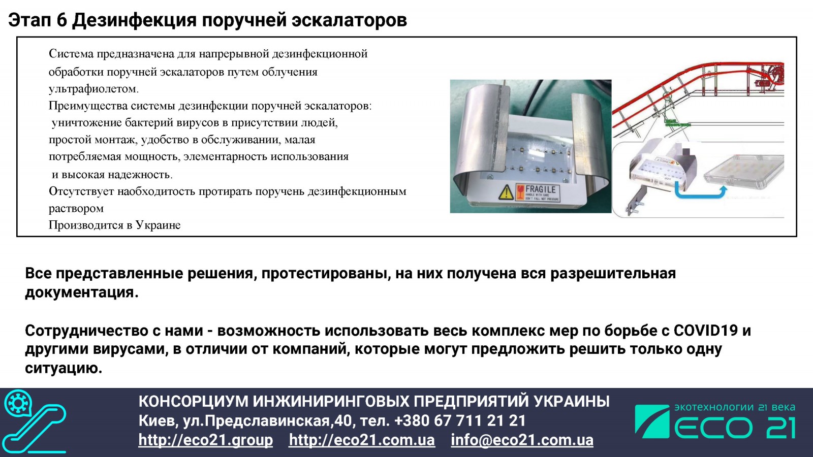 - Автоматические дезинфекторы поручней эскалатора (собственное производство)