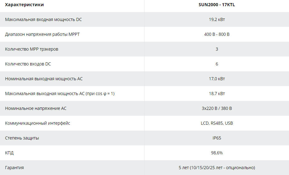 Солнечный сетевой инвертор SUN2000 - 17 KTL