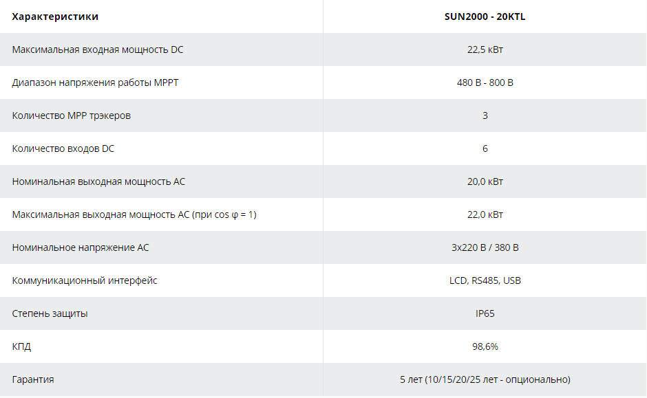 Солнечный сетевой инвертор SUN2000 - 20KTL