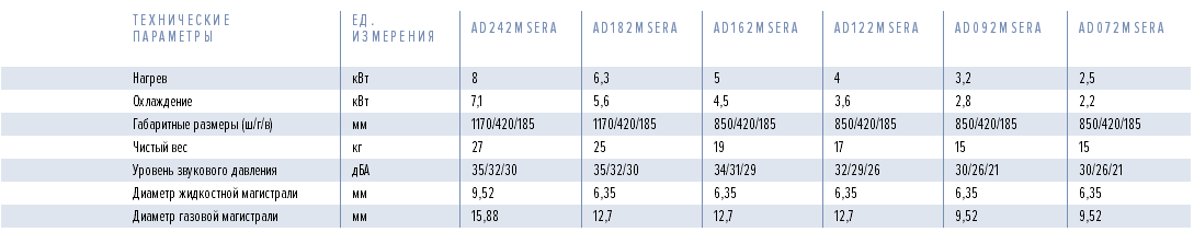 Сверхтонкие канальные блоки Haier серии AD-MSERA, предназначенные для установки в узкие запотолочные зазоры (около 185 миллиметров). Устройства отличаются абсолютной незаметностью, экономичностью и средними показателями мощности. Отлично подходят для небольших помещений, где в прерогативе экономия пространства.